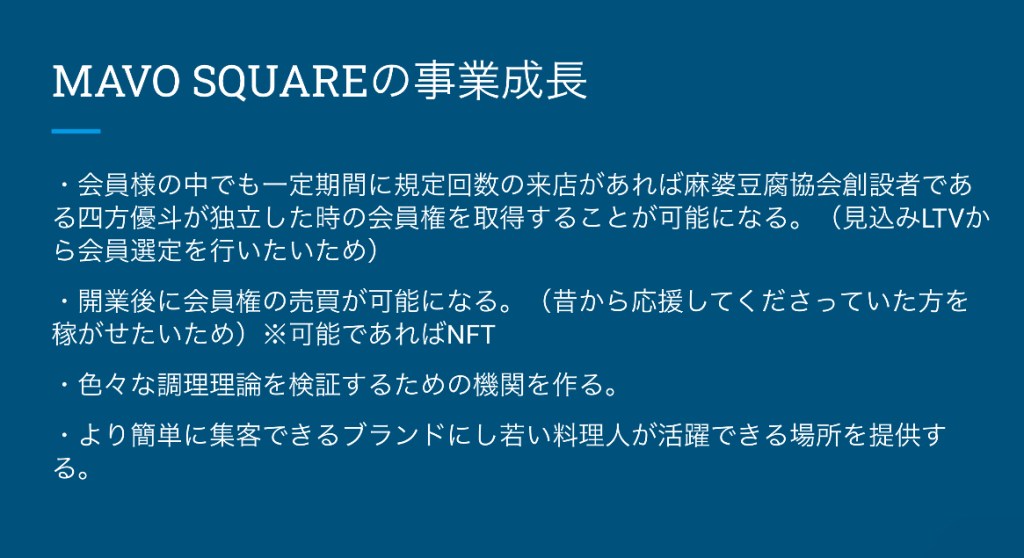 《会員の皆様の好み等を完全に把握し皆様にとって人生最高のレストランを作りたいから》